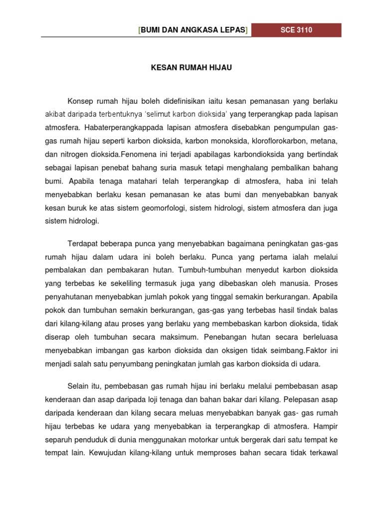 Kesan Rumah Hijau Dan Pemanasan Global Bahasa Melayu Asas Basic Studocu. Antara langkah untuk mengurangkan kesan rumah hijau ini ialah melalui penjimatan tenaga.
